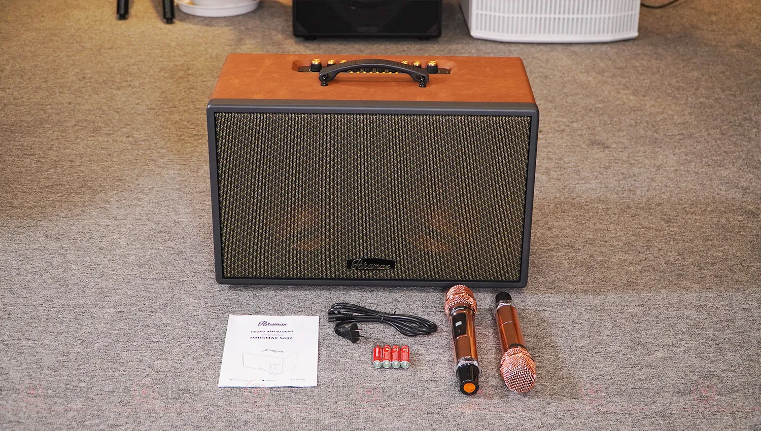 Vỏ loa làm từ gỗ cao cấp, chắc chắn, vừa tạo thẩm mỹ vừa cải thiện chất âm. Đi kèm sản phẩm là micro không dây cao cấp, độ nhạy tốt, giúp người hát tự tin thể hiện giọng ca.
