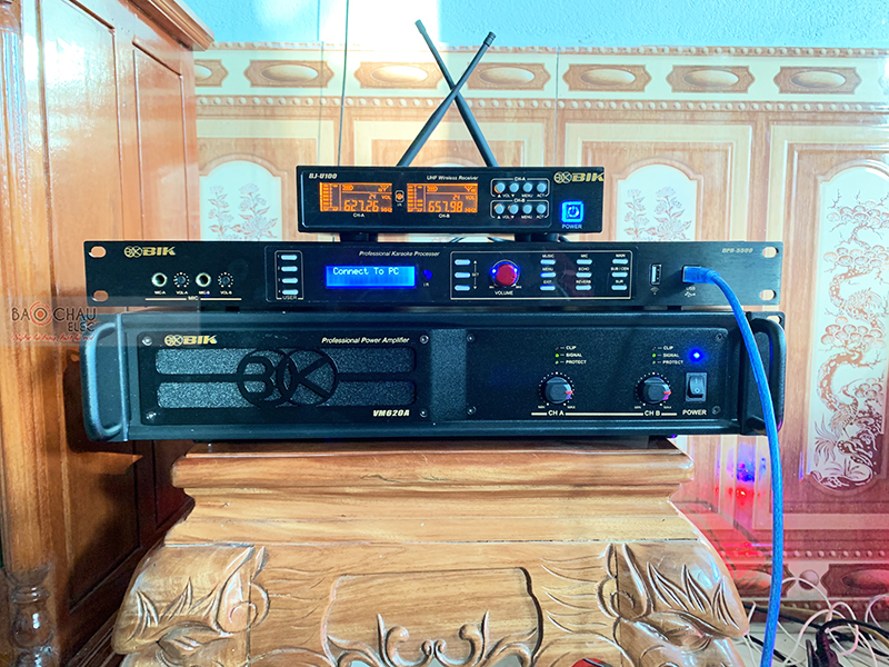 Vang số đồng bộ BIK, BIK BPR-8500 đóng vai trò chống hú rít, khuếch đại và xử lý âm thanh ra loa hay nhất cho bộ dàn karaoke gia đình sử dụng. Cùng với micro không dây BIK BJ-U100 nhẹ, hút âm, hát hay, mang đến trải nghiệm âm nhạc tuyệt vời nhất.