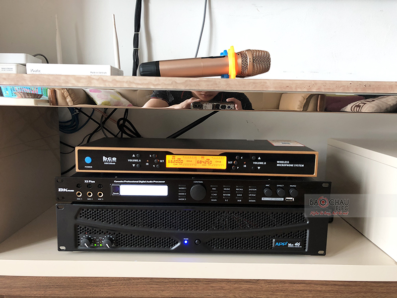 Sự kết hợp của cục đẩy công suất APP MZ46 và vang số BKSound X5 Luxury giúp khuếch đại và xử lý âm thanh ra loa hay nhất cho bộ dàn karaoke sử dụng.