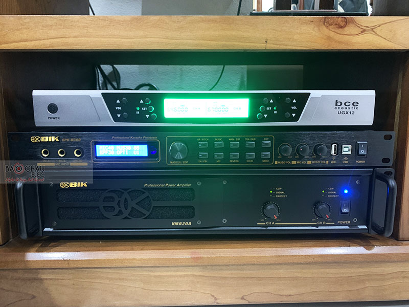Cục đẩy công suất BIK VM620A có khả năng hoạt động mạnh mẽ, ấn tượng, mang đến năng lượng tuyệt vời cho hệ thống âm thanh. Vang số BIK BPR-8500 đóng vai trò chống hú rít, khuếch đại và xử lý âm thanh ra loa hay nhất cho bộ dàn karaoke gia đình sử dụng.