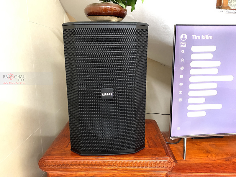 Cặp loa karaoke BIK BSP 412 thương hiệu Nhật là mẫu loa full được thiết kế sang trọng và cao cấp, lắp đặt phù hợp ở kệ tủ tivi của gia đình chị Linh.