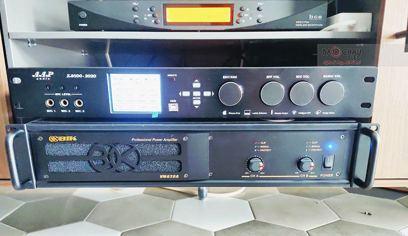 Vang số AAP K9800 New 2020 giúp khuếch đại và xử lý âm thanh ra loa hay nhất cho bộ dàn karaoke sử dụng. Cuối cùng là cặp micro không dây BCE UGX12 Plus có độ nhạy cao, hạn chế hú rít, hát cực hay.