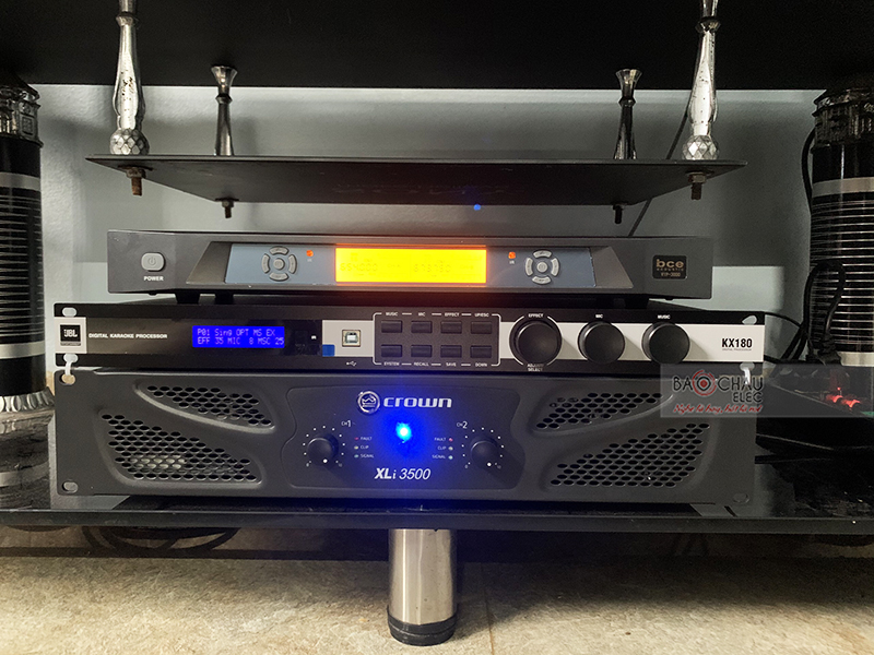 Sự kết hợp của cục đẩy công suất Crown Xli 3500 và vang số JBL KX180 giúp khuếch đại và xử lý âm thanh ra loa hay nhất cho bộ dàn karaoke sử dụng.