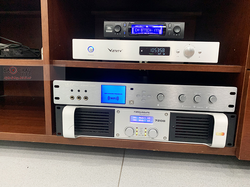 Cục đẩy công suất Famousound 7208 làm nhiệm vụ khuếch đại âm thanh đảm bảo công suất thêm mạnh mẽ, chân thực. Kết hợp cùng vang số cao cấp AAP K9800 New xử lý âm thanh ra loa mượt mà, trong trẻo ra loa.